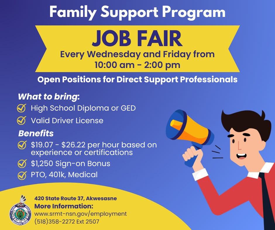 Looking for a career where you can make a difference? The SRMT Family Support Program is hosting weekly job fairs!