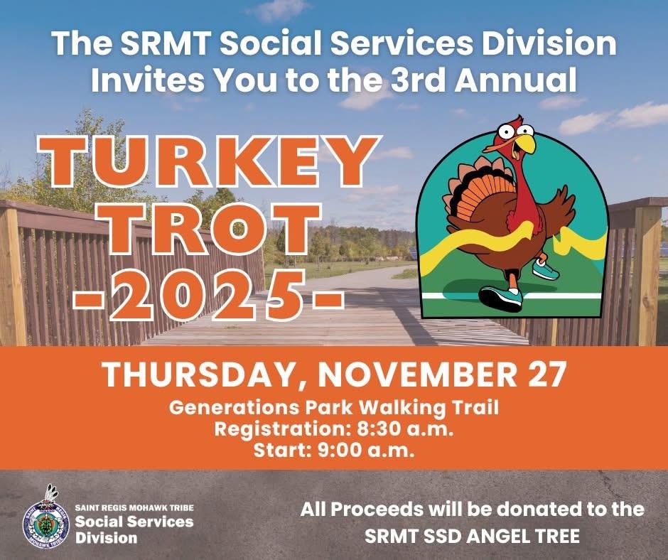 The Saint Regis Mohawk Tribe's Social Services Division would like to invite community members to come wobble before you gobble at the 2nd annual Turkey Trot.